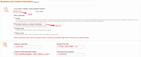 4、填寫公司及聯(lián)系信息(選擇公司帶limited結(jié)尾的,同時(shí)填寫香港公司商業(yè)登記證上的信息,信息要一致)