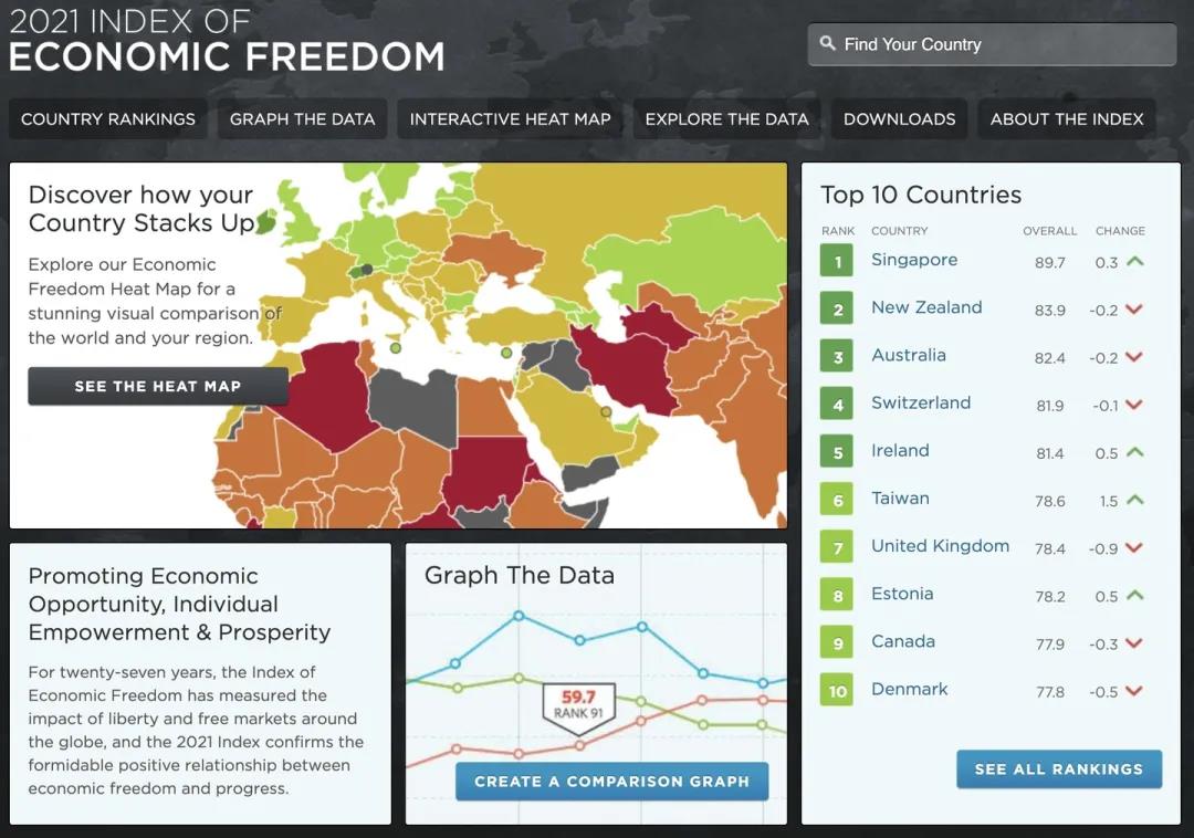 在今年的全球權(quán)威的經(jīng)濟(jì)自由度評價(jià)指標(biāo)中,由《華爾街日報(bào)》和美國傳統(tǒng)基金會(huì)發(fā)布的2021年度報(bào)告中,新加坡成為全球最自由經(jīng)濟(jì)體。在加拿大菲沙研究所最新發(fā)表的《世界經(jīng)濟(jì)自由度2020年度報(bào)告》中,新加坡排名第二。